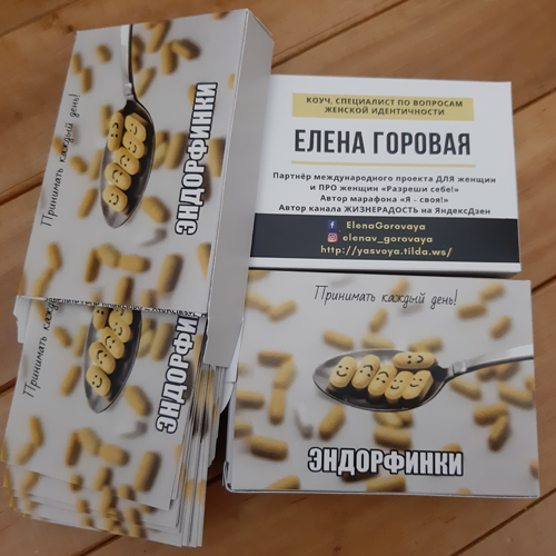 При помощи Эндорфинок можно себя «раскачать» на принятие решения. Вдруг откроются новые перспективы и возможности, появится желание дойти, завершить, достичь! При помощи карт можно пересмотреть свое отношение к семье, работе, финансам.
